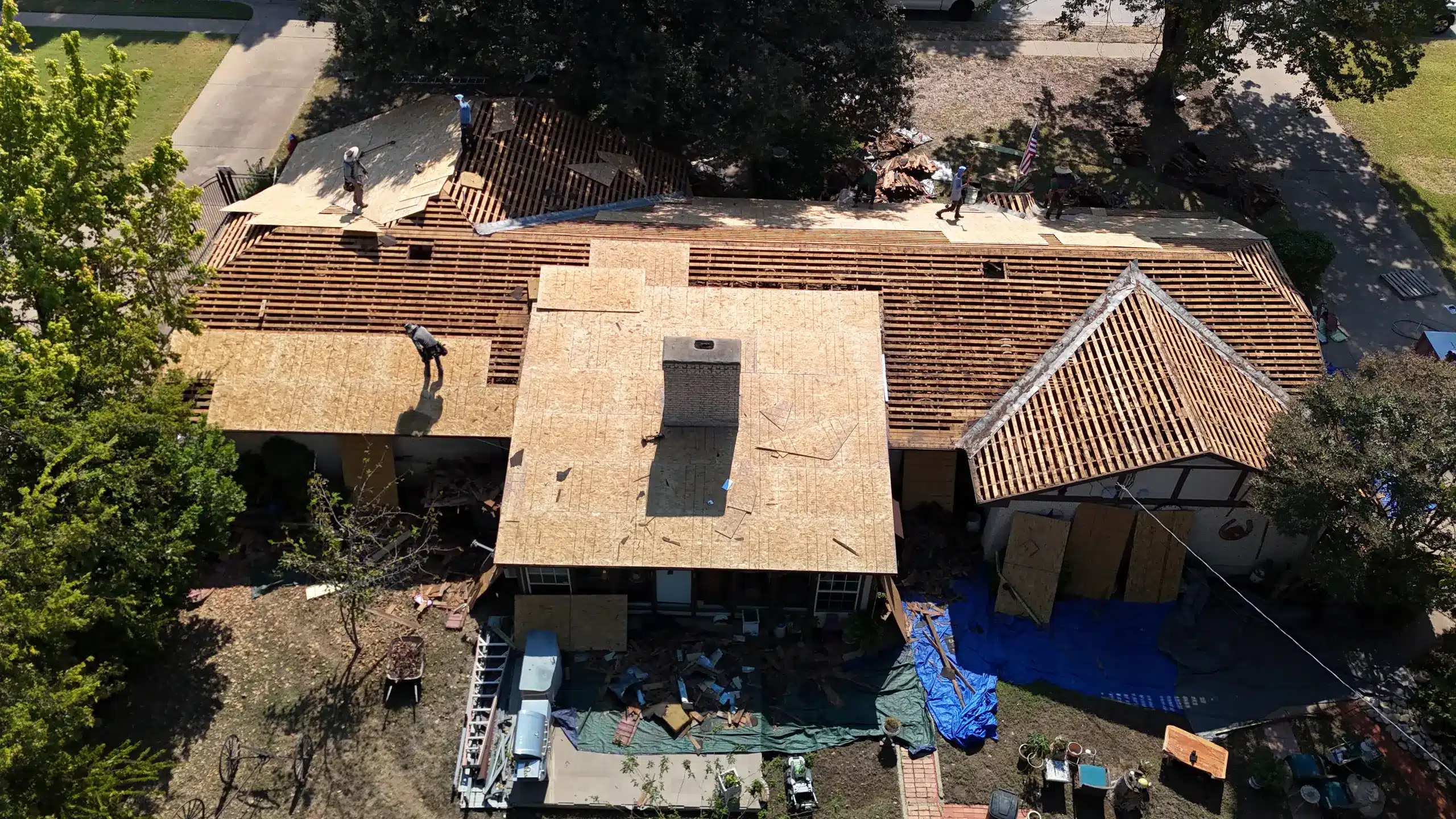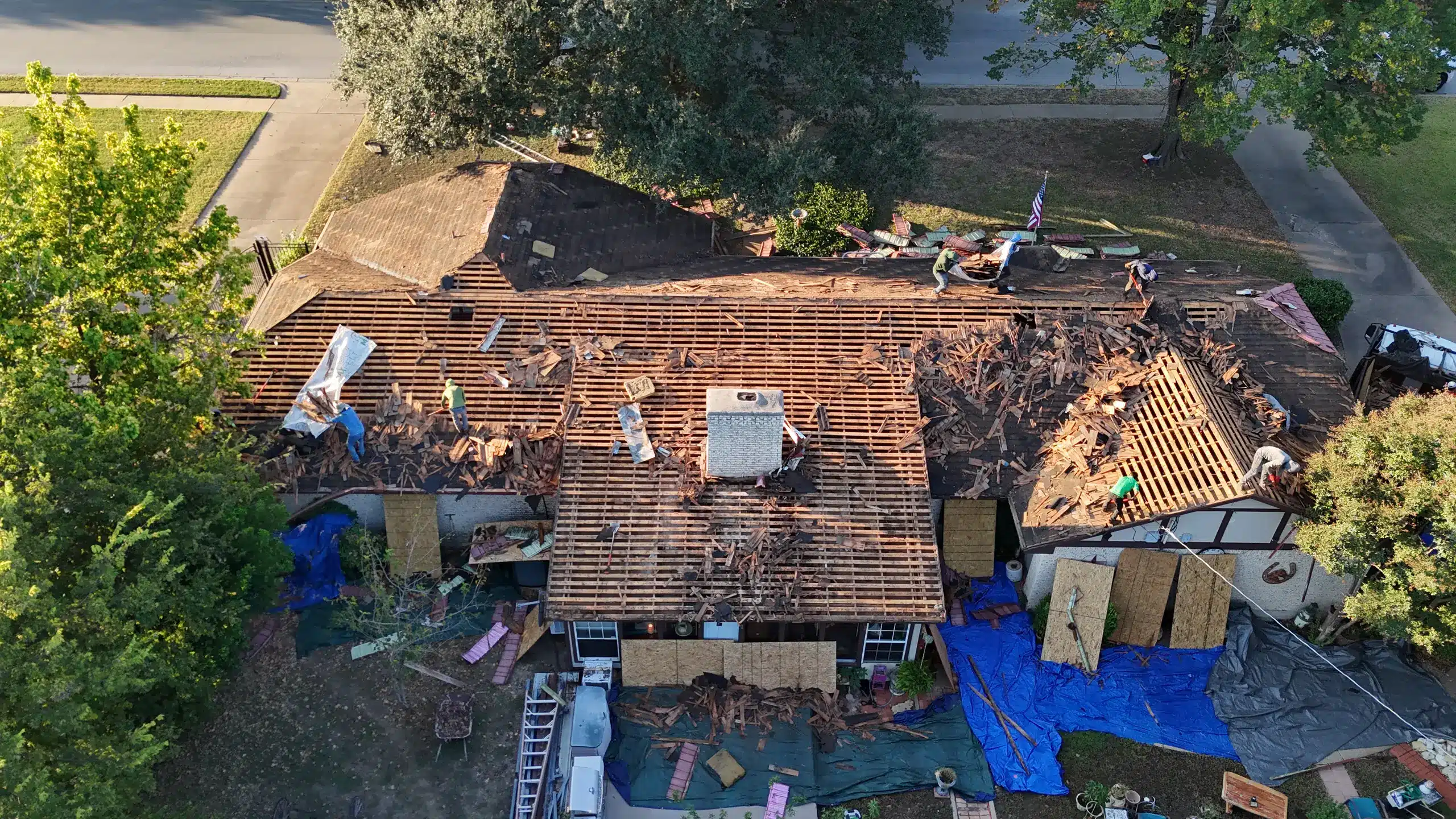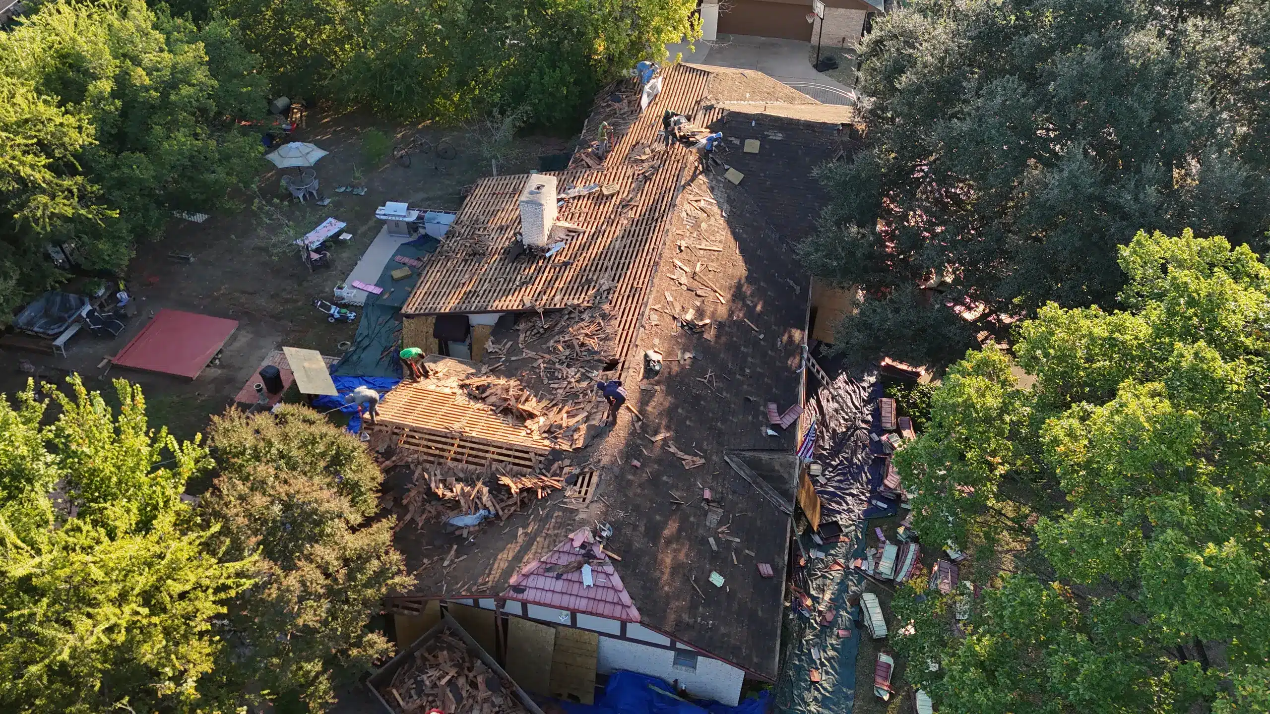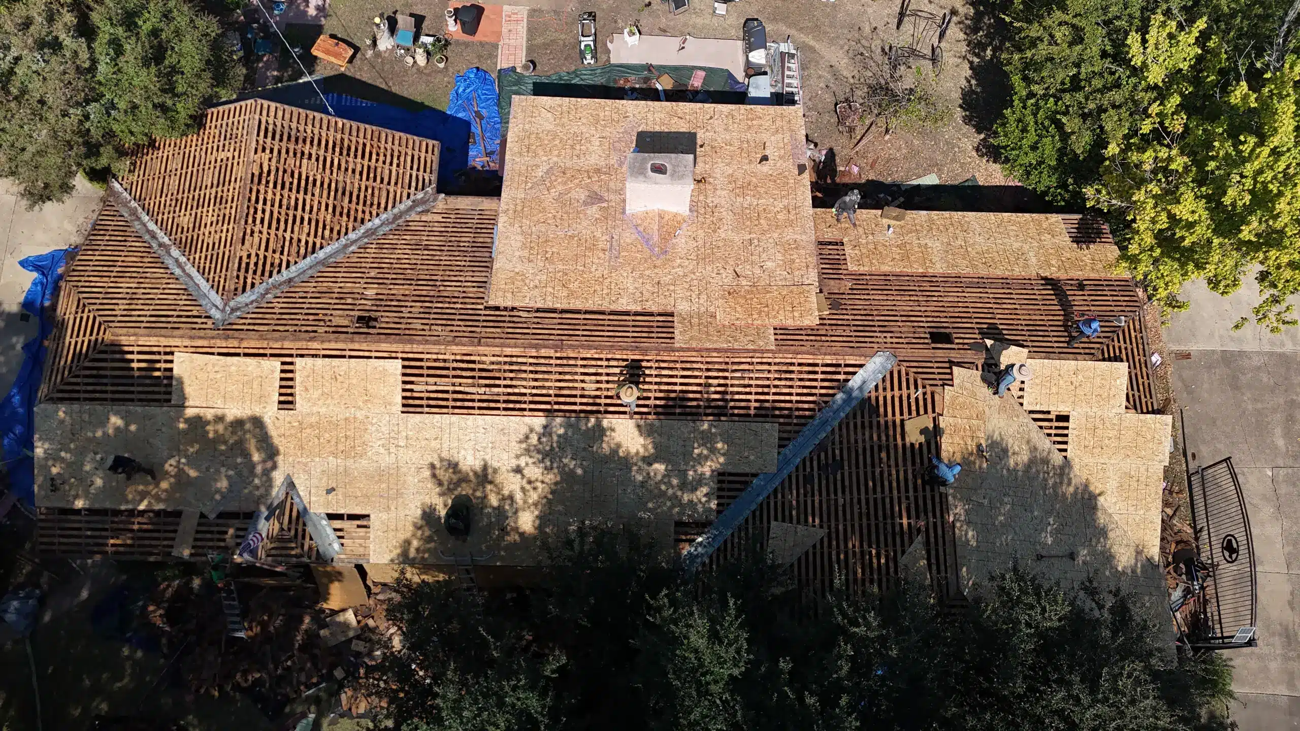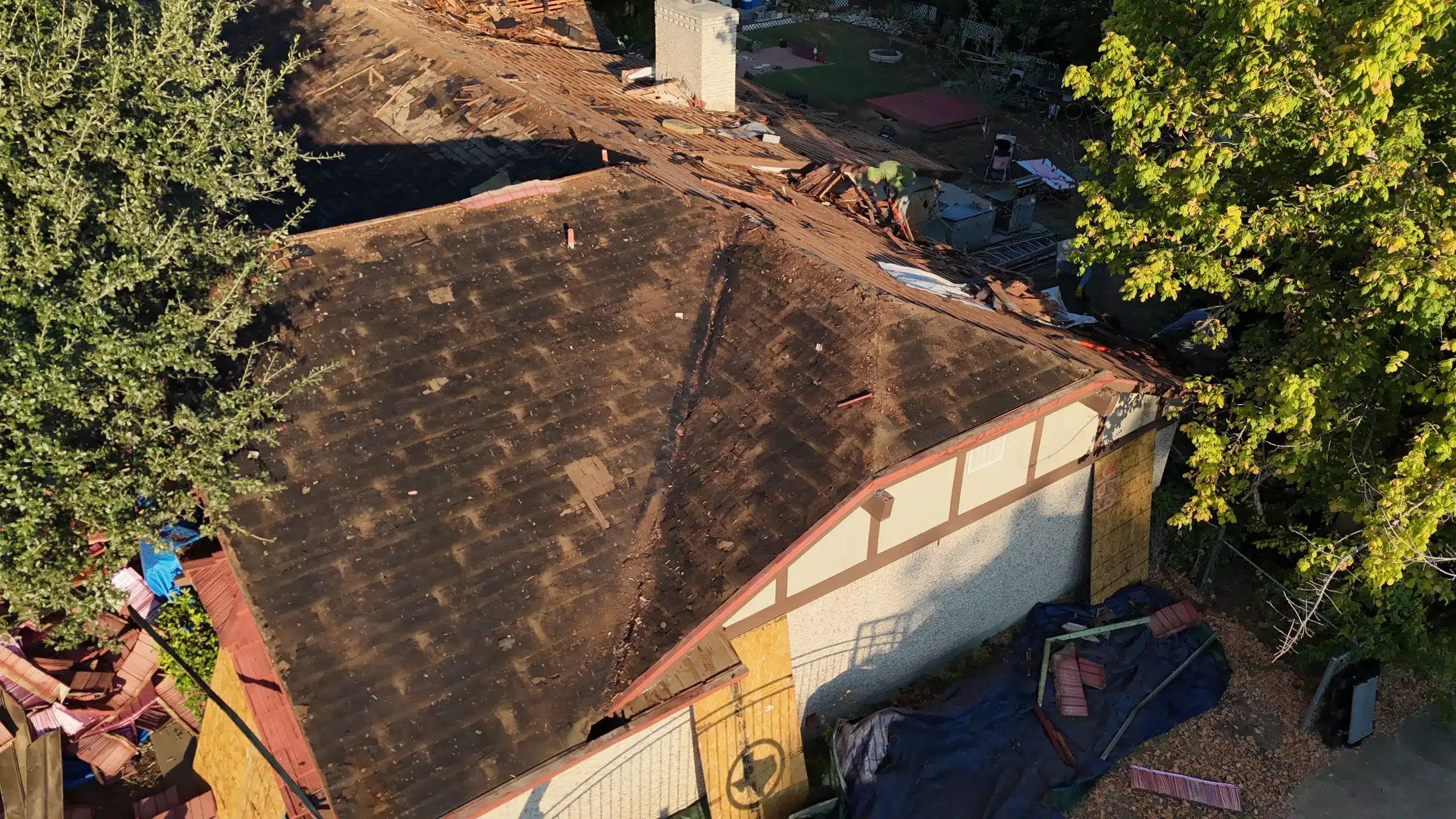 During our inspection, we found that wood shingles had been installed beneath an Alcoa Aluminum Shake roofing system. This meant the home required a complete tear-off and redeck to meet current building code requirements. This became one of the key factors our teams successfully argued with the insurance company, ensuring the approved scope included full decking replacement.