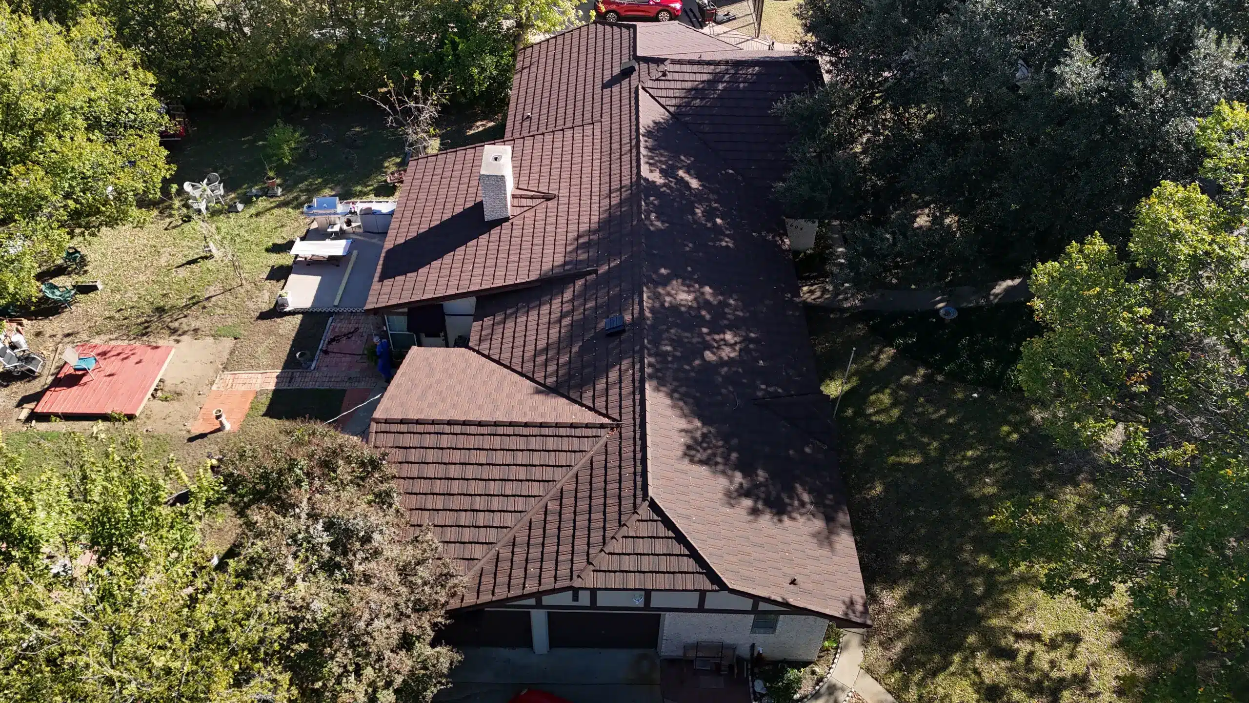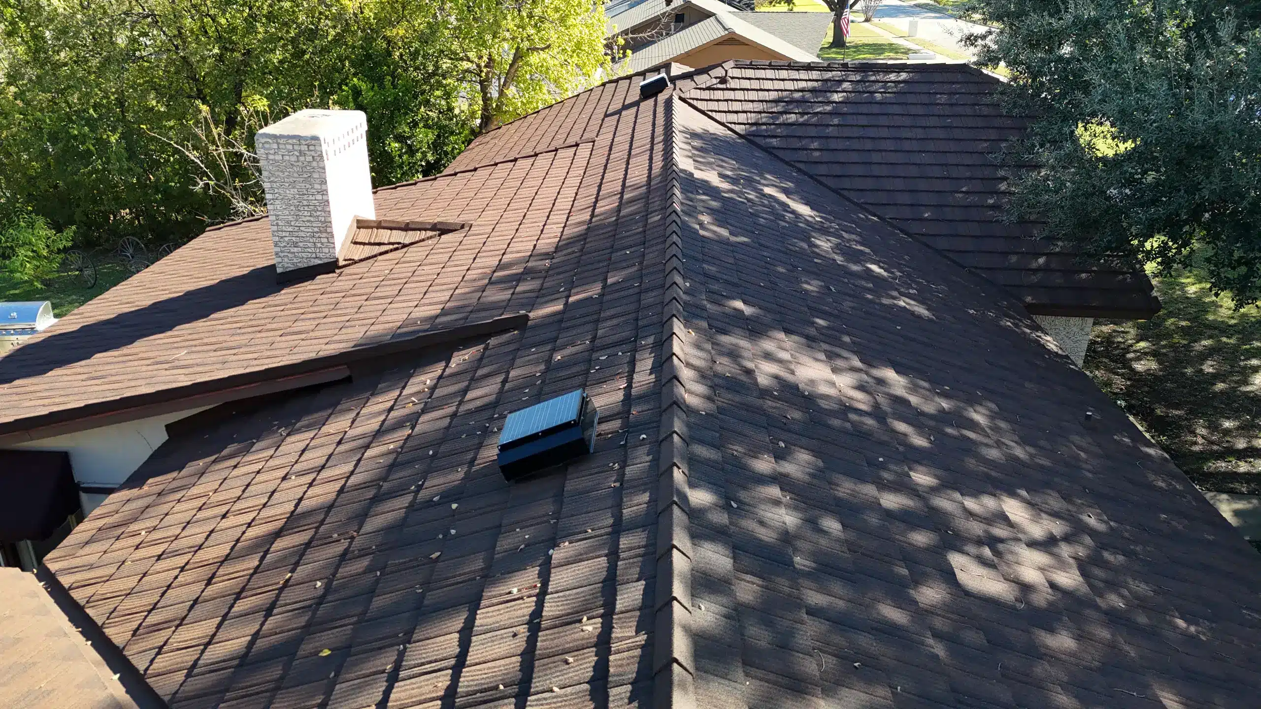 Thanks to our efforts, Mr. Morris was able to upgrade to a United Steel Pine Crest Shake roof in the Barclay color, a premium stone-coated steel system that offers both durability and timeless beauty. We also upgraded the home’s ventilation to solar-powered attic fans, and installed foil-backed radiant barrier decking for better energy efficiency.